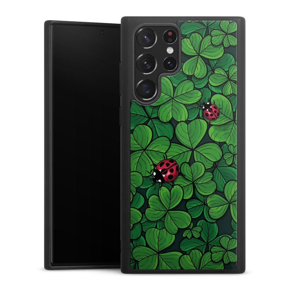 We print your design on the back of the glass inlay and then connect it firmly to the silicone case ,so that nothing sticks out and everything looks like it was cast from one piece. In addition, the sturdy glass element is protected from scratches by an additional coating and ensures a slight reflection on the shiny print image.