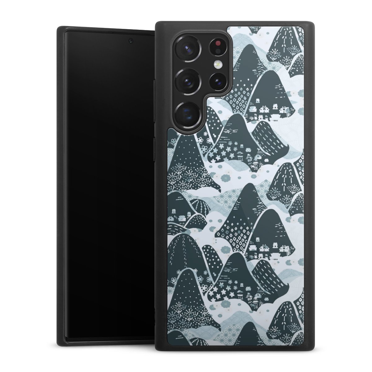 We print your design on the back of the glass inlay and then connect it firmly to the silicone case ,so that nothing sticks out and everything looks like it was cast from one piece. In addition, the sturdy glass element is protected from scratches by an additional coating and ensures a slight reflection on the shiny print image.
