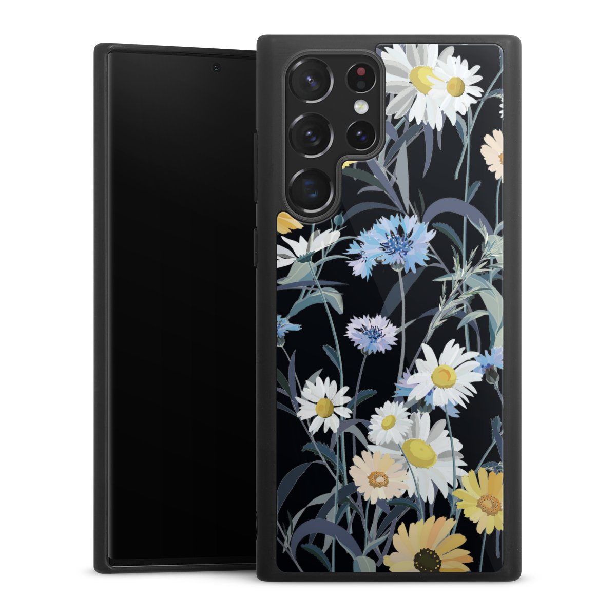 We print your design on the back of the glass inlay and then connect it firmly to the silicone case ,so that nothing sticks out and everything looks like it was cast from one piece. In addition, the sturdy glass element is protected from scratches by an additional coating and ensures a slight reflection on the shiny print image.