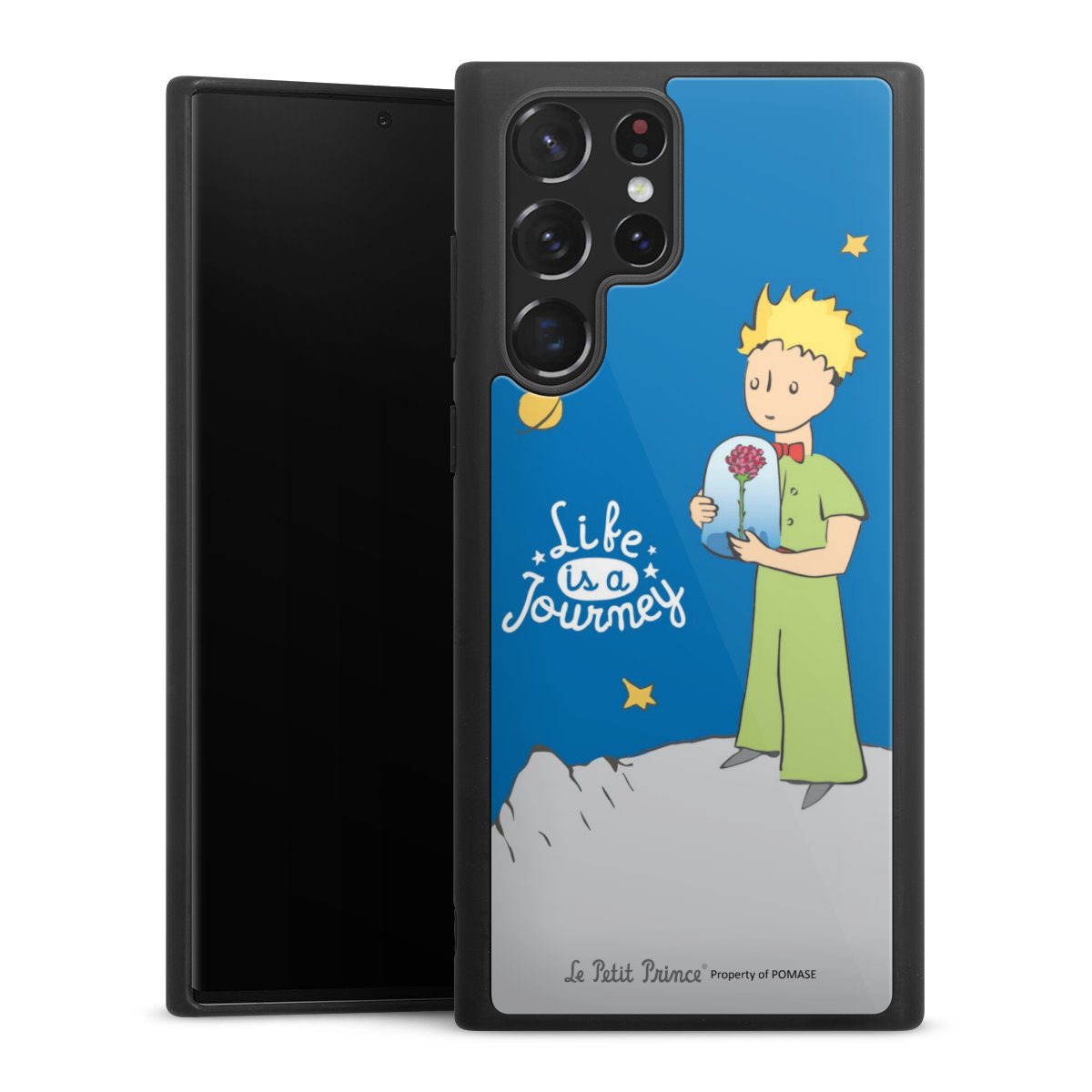 We print your design on the back of the glass inlay and then connect it firmly to the silicone case ,so that nothing sticks out and everything looks like it was cast from one piece. In addition, the sturdy glass element is protected from scratches by an additional coating and ensures a slight reflection on the shiny print image.