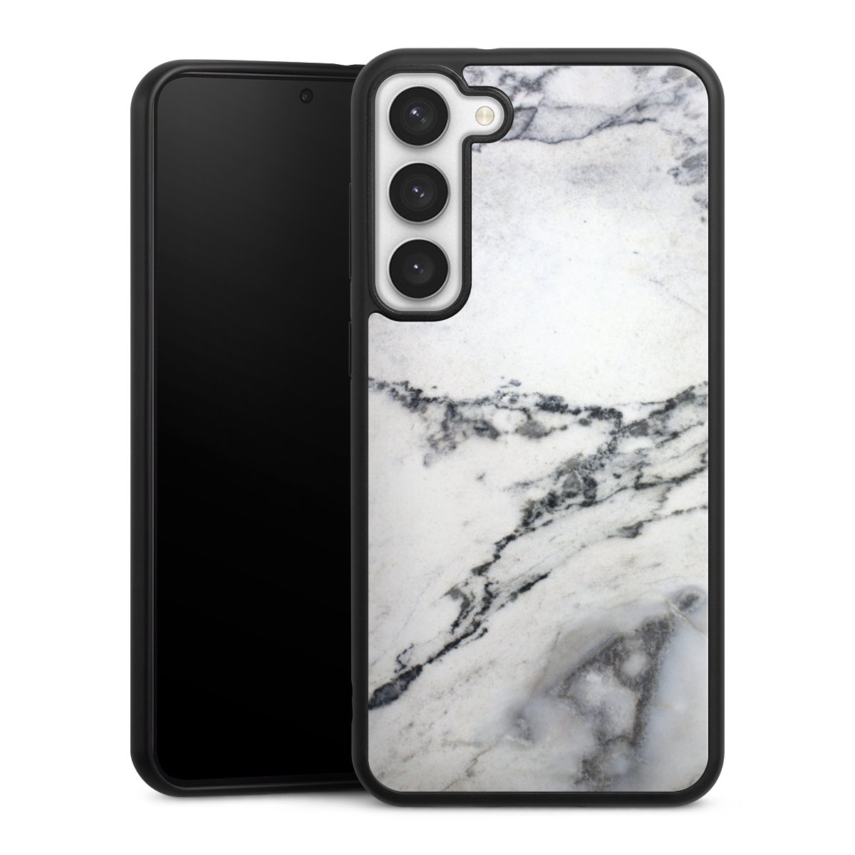 The contrast between the matte black TPU on the sides and the glossy glass surface not only makes the Gallery Case a fest for the eyes, but also a real treat for the hands: The glass gives the phone a pleasantly smooth back and the soft silicone edge provides the necessary grip.