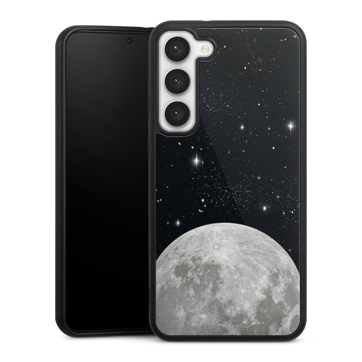 We print your design on the back of the glass inlay and then connect it firmly to the silicone case ,so that nothing sticks out and everything looks like it was cast from one piece. In addition, the sturdy glass element is protected from scratches by an additional coating and ensures a slight reflection on the shiny print image.