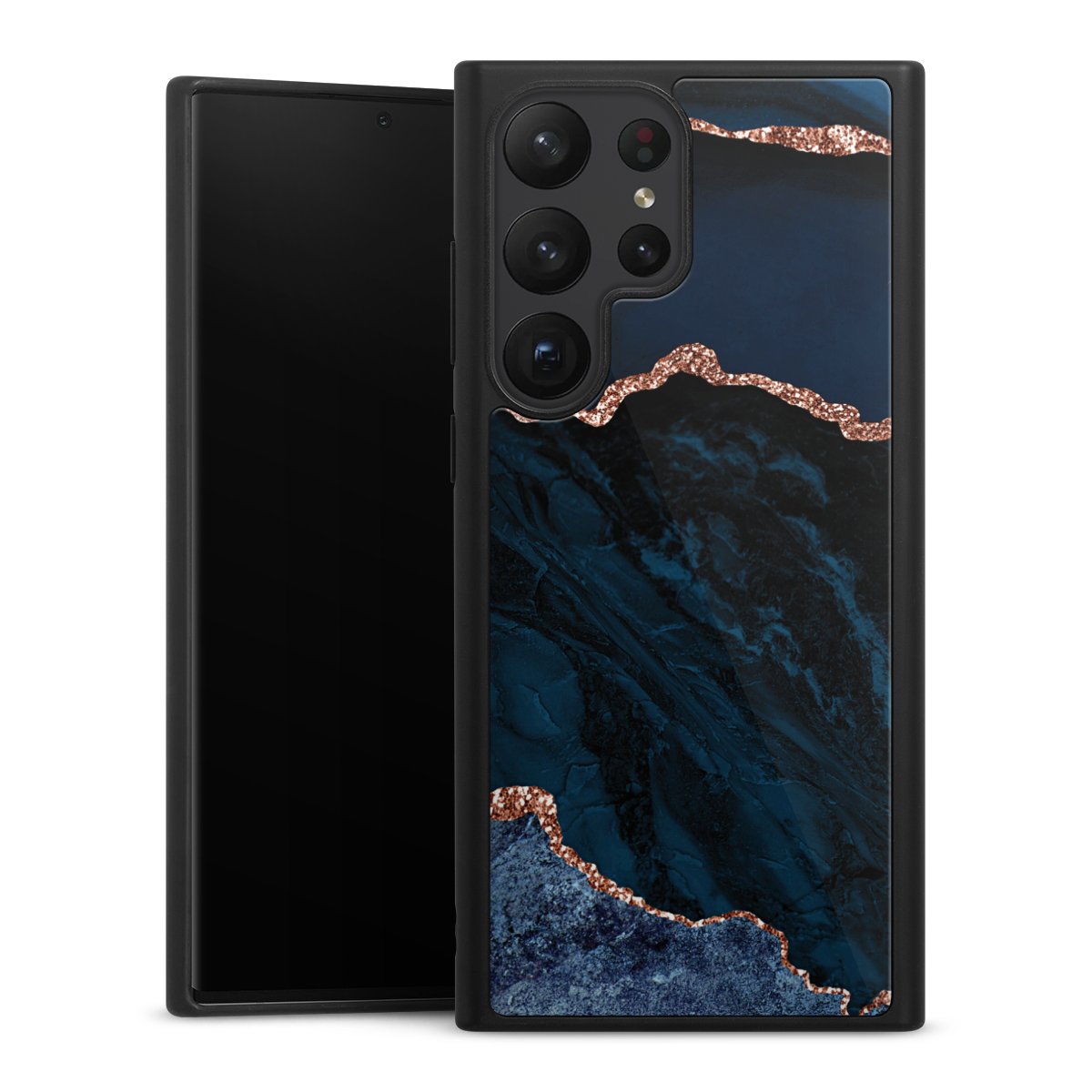 We print your design on the back of the glass inlay and then connect it firmly to the silicone case ,so that nothing sticks out and everything looks like it was cast from one piece. In addition, the sturdy glass element is protected from scratches by an additional coating and ensures a slight reflection on the shiny print image.