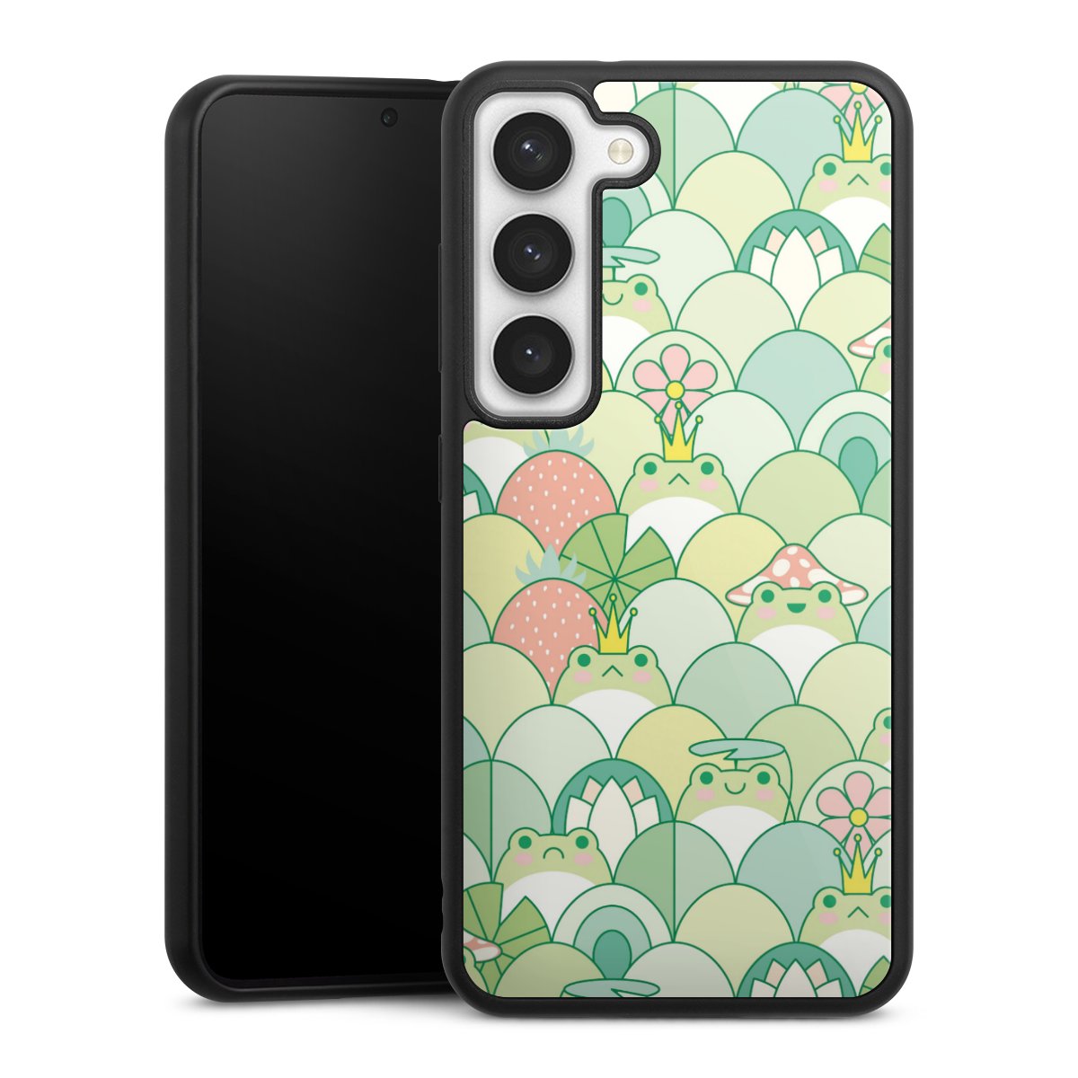 We print your design on the back of the glass inlay and then connect it firmly to the silicone case ,so that nothing sticks out and everything looks like it was cast from one piece. In addition, the sturdy glass element is protected from scratches by an additional coating and ensures a slight reflection on the shiny print image.