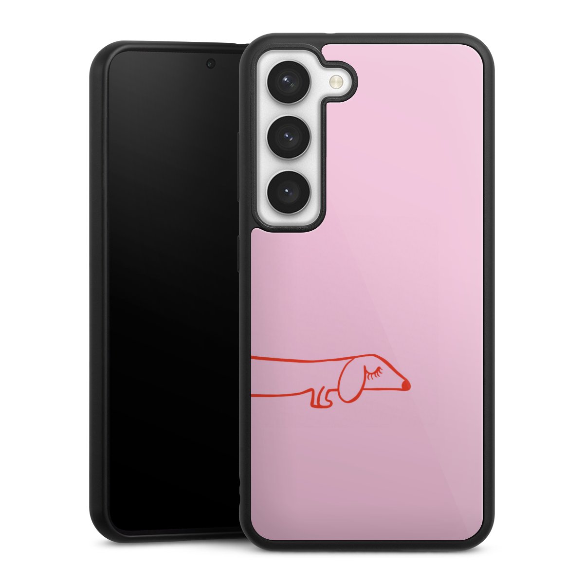 We print your design on the back of the glass inlay and then connect it firmly to the silicone case ,so that nothing sticks out and everything looks like it was cast from one piece. In addition, the sturdy glass element is protected from scratches by an additional coating and ensures a slight reflection on the shiny print image.