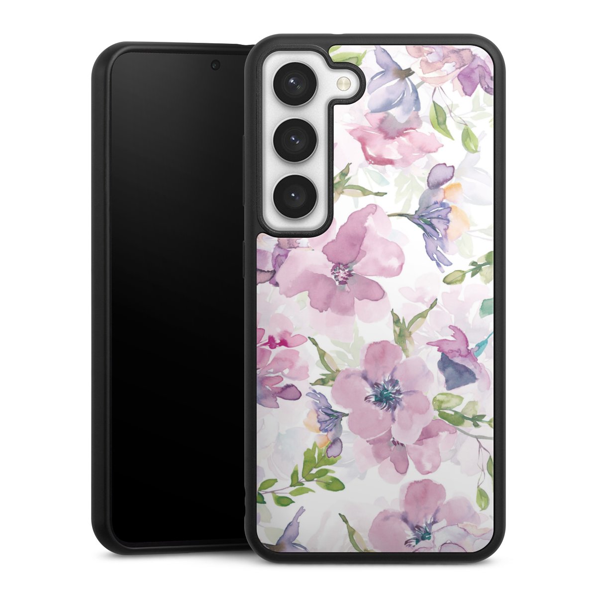 We print your design on the back of the glass inlay and then connect it firmly to the silicone case ,so that nothing sticks out and everything looks like it was cast from one piece. In addition, the sturdy glass element is protected from scratches by an additional coating and ensures a slight reflection on the shiny print image.