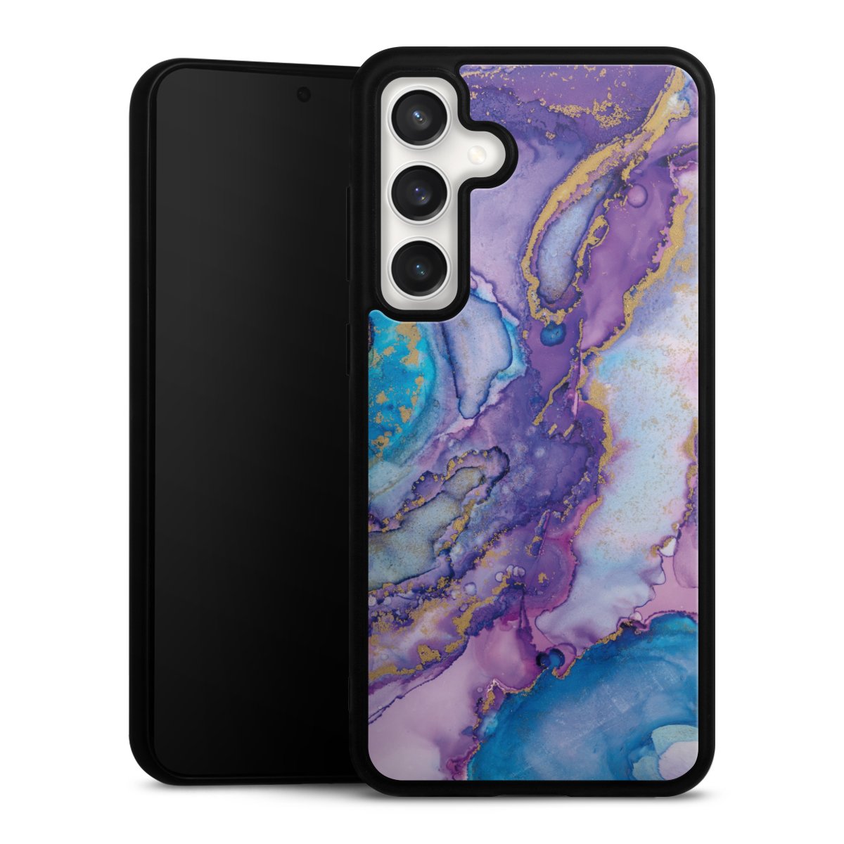 We print your design on the back of the glass inlay and then connect it firmly to the silicone case ,so that nothing sticks out and everything looks like it was cast from one piece. In addition, the sturdy glass element is protected from scratches by an additional coating and ensures a slight reflection on the shiny print image.