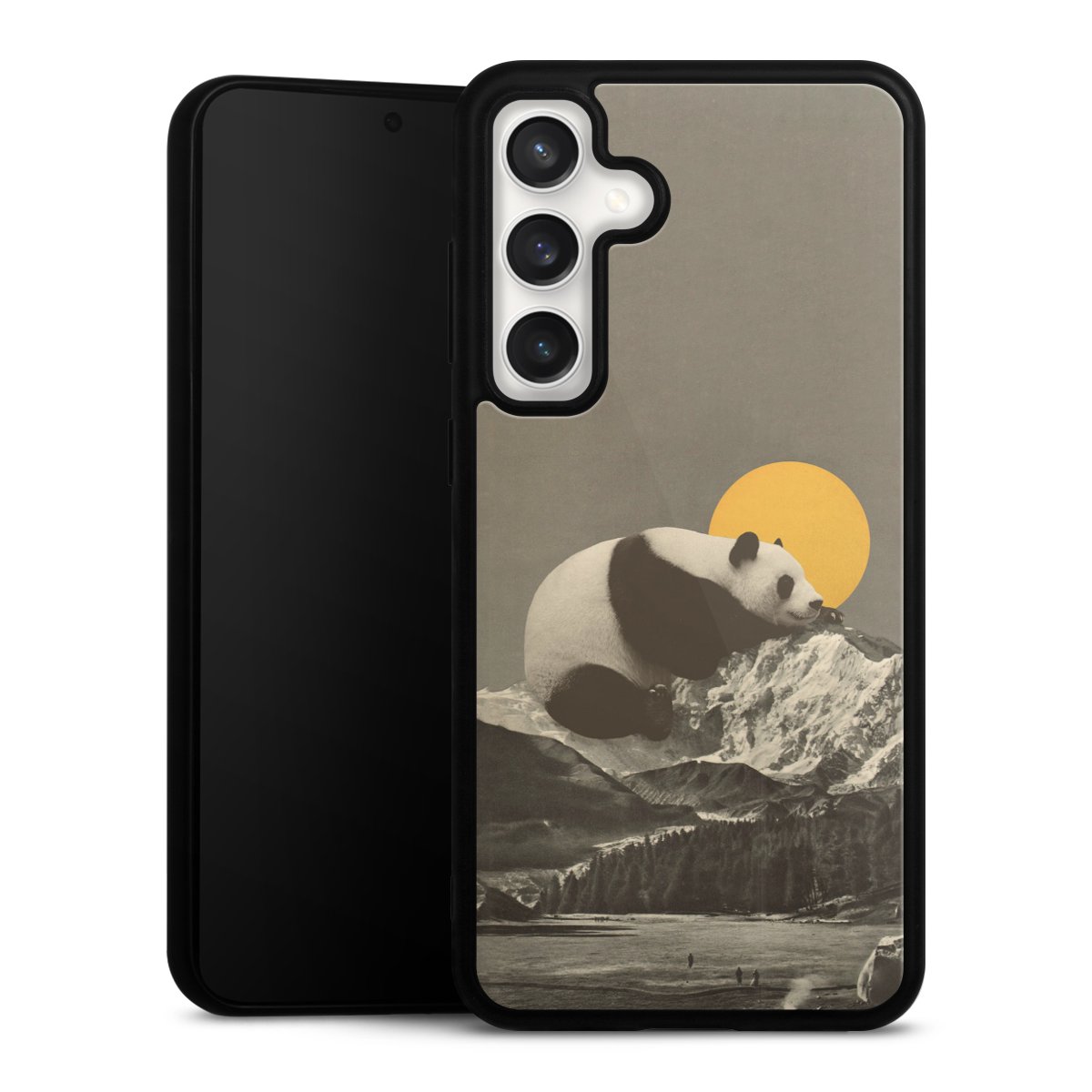 We print your design on the back of the glass inlay and then connect it firmly to the silicone case ,so that nothing sticks out and everything looks like it was cast from one piece. In addition, the sturdy glass element is protected from scratches by an additional coating and ensures a slight reflection on the shiny print image.