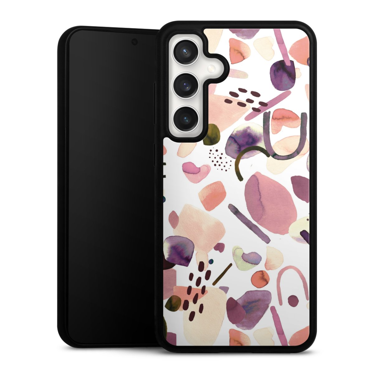 We print your design on the back of the glass inlay and then connect it firmly to the silicone case ,so that nothing sticks out and everything looks like it was cast from one piece. In addition, the sturdy glass element is protected from scratches by an additional coating and ensures a slight reflection on the shiny print image.
