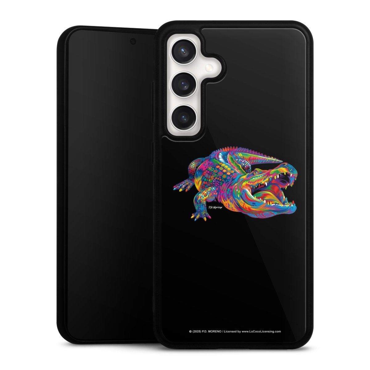 We print your design on the back of the glass inlay and then connect it firmly to the silicone case ,so that nothing sticks out and everything looks like it was cast from one piece. In addition, the sturdy glass element is protected from scratches by an additional coating and ensures a slight reflection on the shiny print image.