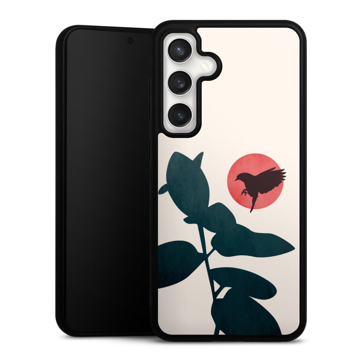 We print your design on the back of the glass inlay and then connect it firmly to the silicone case ,so that nothing sticks out and everything looks like it was cast from one piece. In addition, the sturdy glass element is protected from scratches by an additional coating and ensures a slight reflection on the shiny print image.