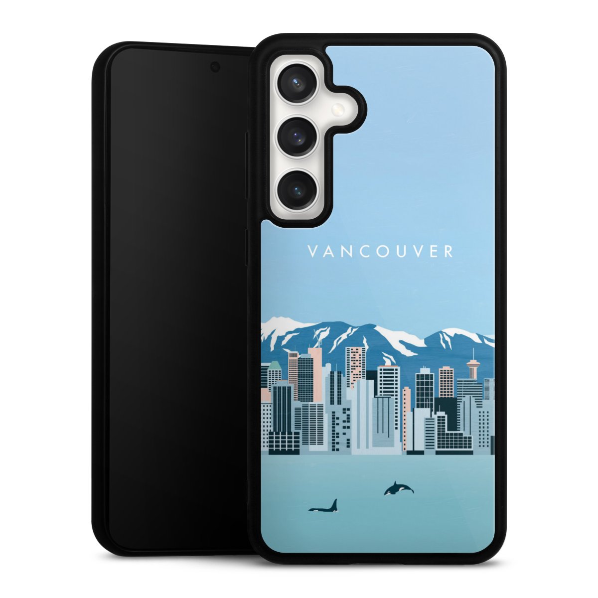 We print your design on the back of the glass inlay and then connect it firmly to the silicone case ,so that nothing sticks out and everything looks like it was cast from one piece. In addition, the sturdy glass element is protected from scratches by an additional coating and ensures a slight reflection on the shiny print image.