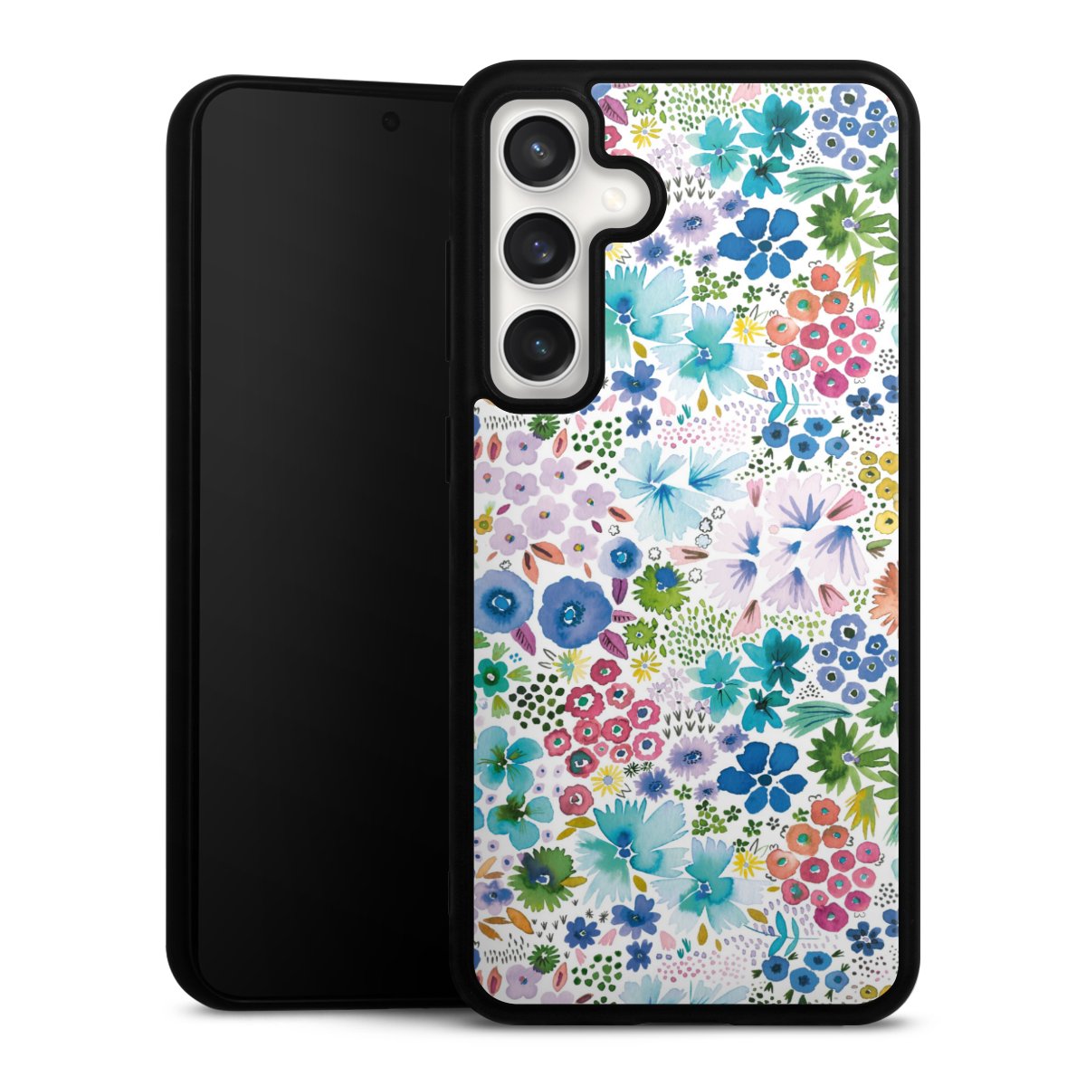 For this phone case, we use the solid direct printing process. The printing area covers the back of the glass plate, the edge of the case remains unprinted. The phone case can only be ordered fully printed. Choose for your design one of our exclusive designs or get creative and create your own design, for example with pictures and overlays. The choice is yours!