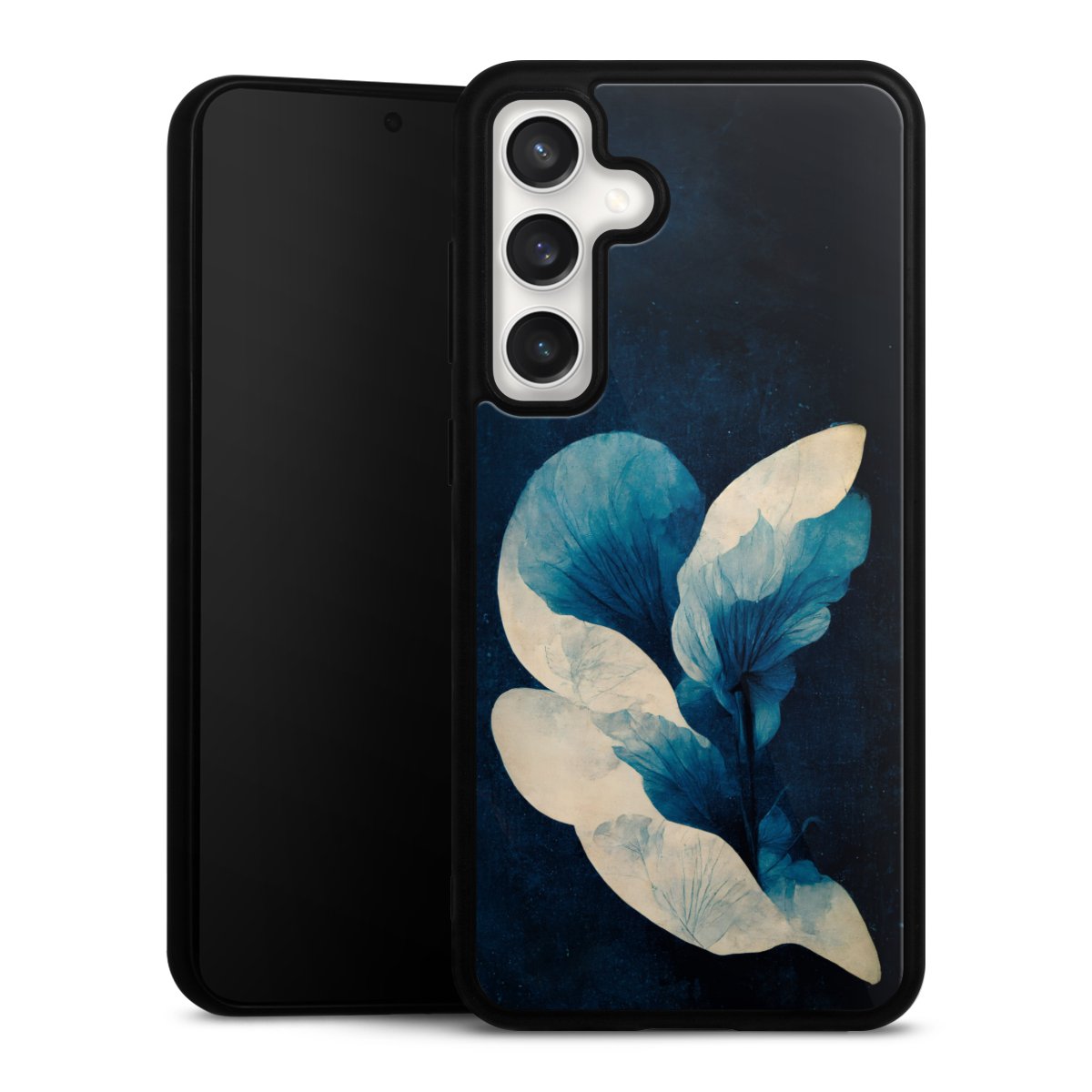 We print your design on the back of the glass inlay and then connect it firmly to the silicone case ,so that nothing sticks out and everything looks like it was cast from one piece. In addition, the sturdy glass element is protected from scratches by an additional coating and ensures a slight reflection on the shiny print image.