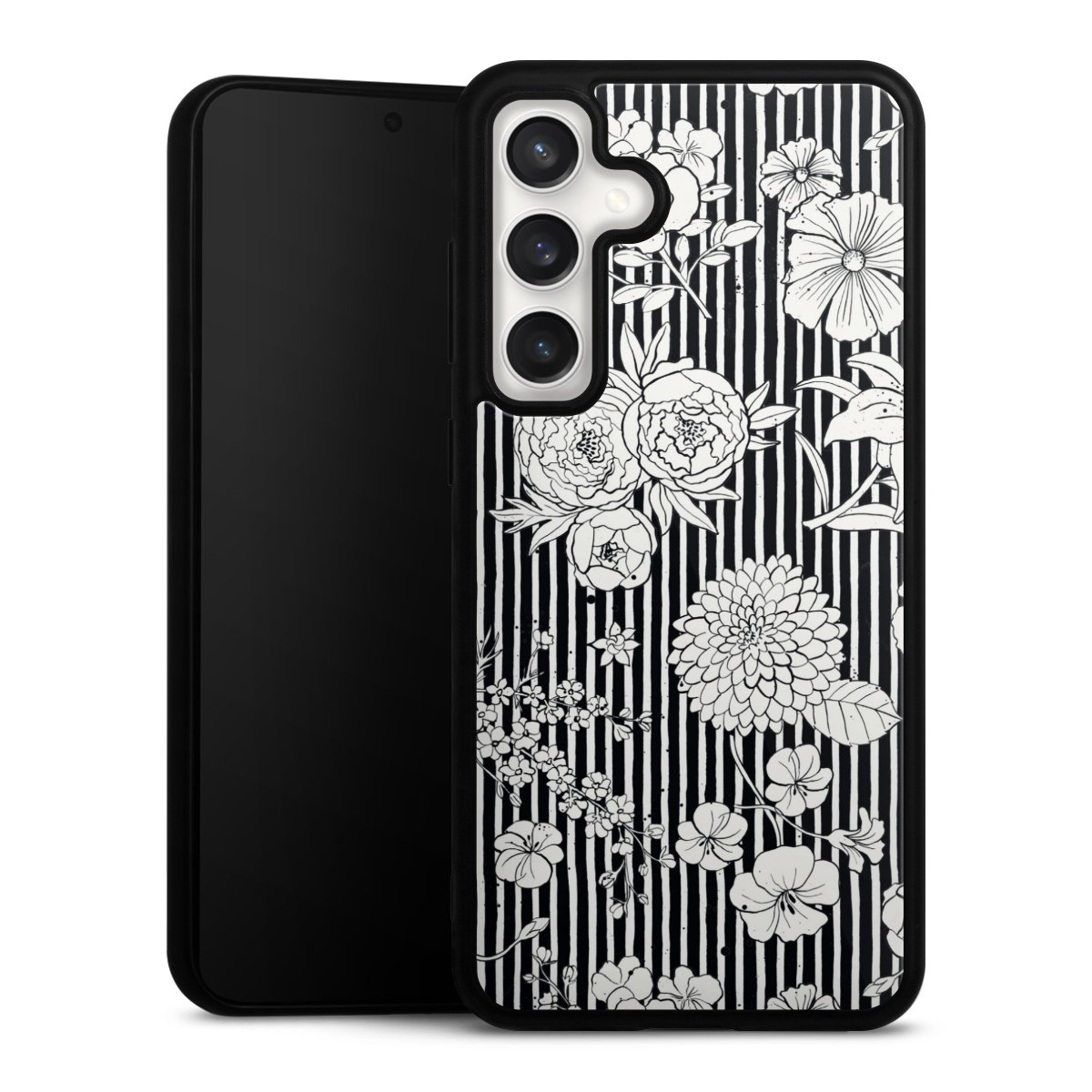 Flowers and Stripes Black and White