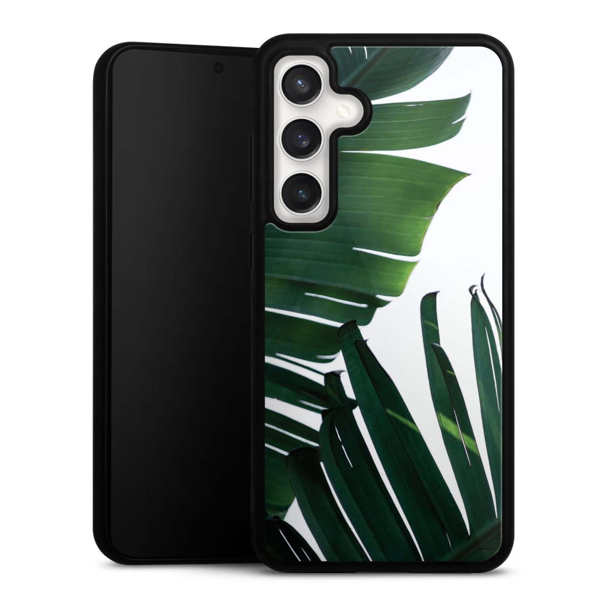 We print your design on the back of the glass inlay and then connect it firmly to the silicone case ,so that nothing sticks out and everything looks like it was cast from one piece. In addition, the sturdy glass element is protected from scratches by an additional coating and ensures a slight reflection on the shiny print image.