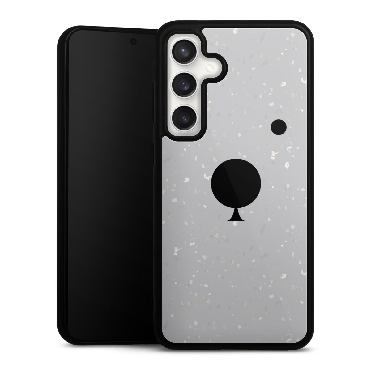 We print your design on the back of the glass inlay and then connect it firmly to the silicone case ,so that nothing sticks out and everything looks like it was cast from one piece. In addition, the sturdy glass element is protected from scratches by an additional coating and ensures a slight reflection on the shiny print image.
