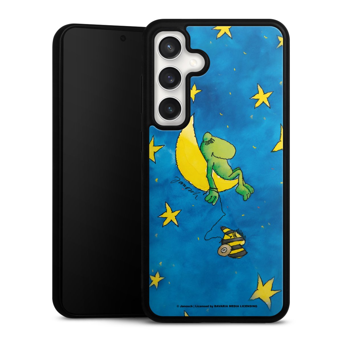 We print your design on the back of the glass inlay and then connect it firmly to the silicone case ,so that nothing sticks out and everything looks like it was cast from one piece. In addition, the sturdy glass element is protected from scratches by an additional coating and ensures a slight reflection on the shiny print image.