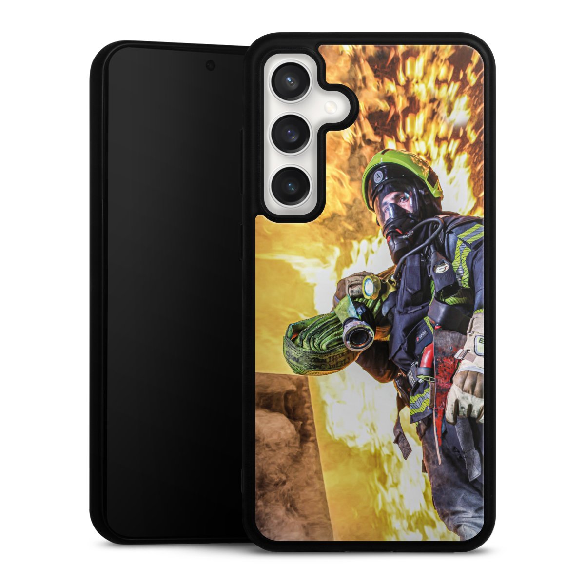 We print your design on the back of the glass inlay and then connect it firmly to the silicone case ,so that nothing sticks out and everything looks like it was cast from one piece. In addition, the sturdy glass element is protected from scratches by an additional coating and ensures a slight reflection on the shiny print image.
