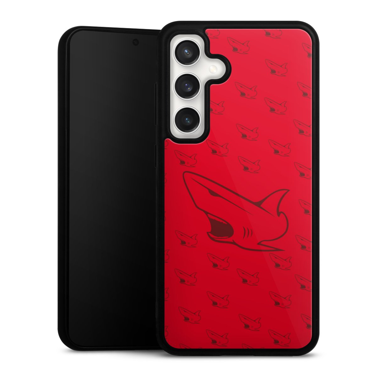 We print your design on the back of the glass inlay and then connect it firmly to the silicone case ,so that nothing sticks out and everything looks like it was cast from one piece. In addition, the sturdy glass element is protected from scratches by an additional coating and ensures a slight reflection on the shiny print image.