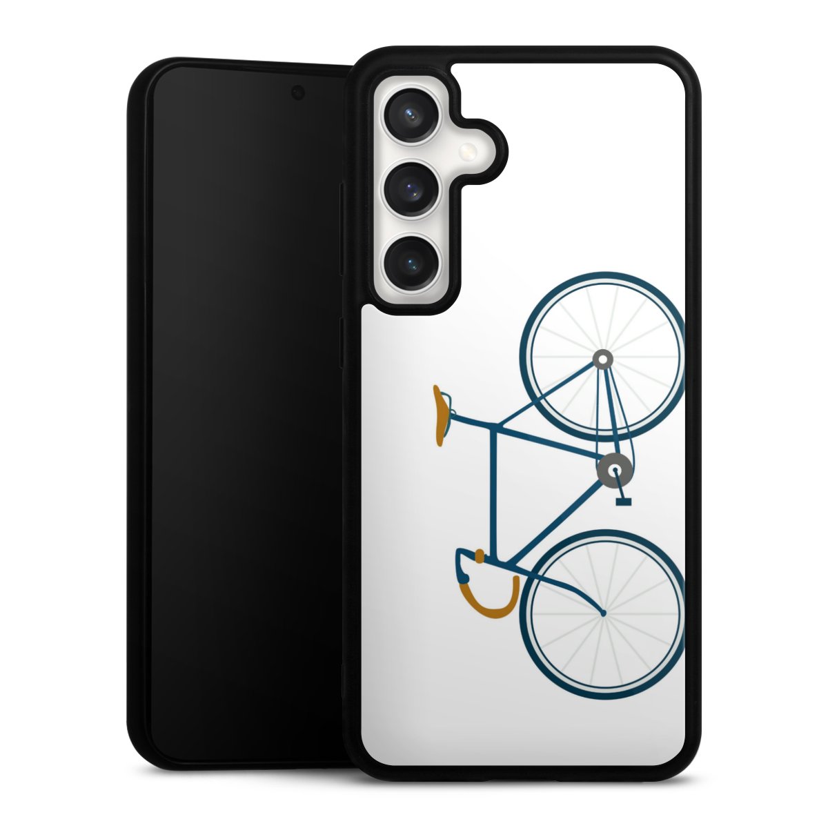 We print your design on the back of the glass inlay and then connect it firmly to the silicone case ,so that nothing sticks out and everything looks like it was cast from one piece. In addition, the sturdy glass element is protected from scratches by an additional coating and ensures a slight reflection on the shiny print image.