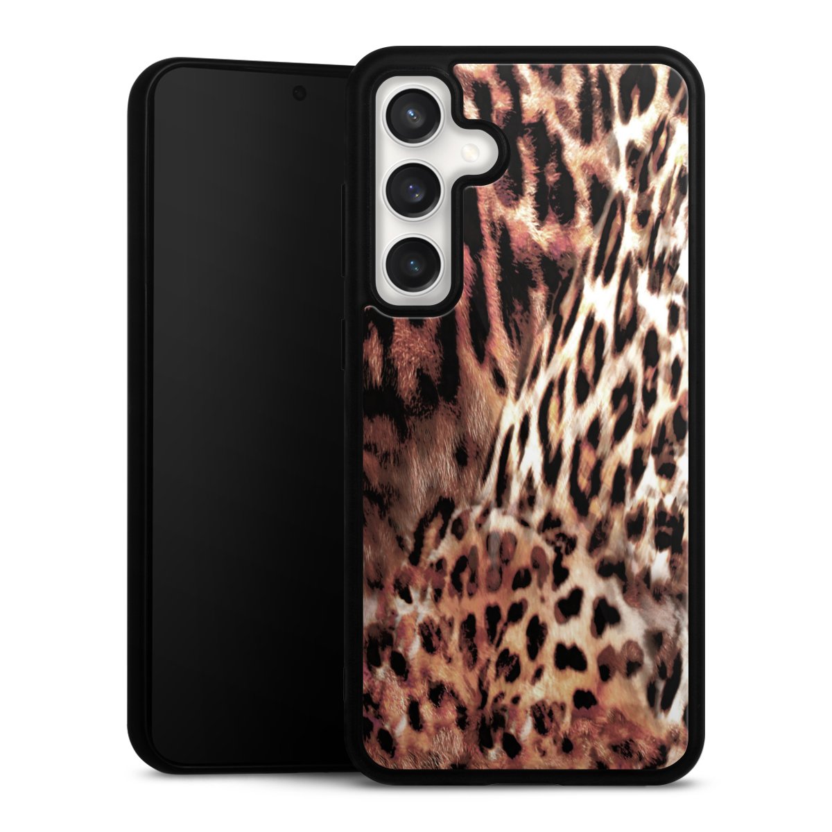 We print your design on the back of the glass inlay and then connect it firmly to the silicone case ,so that nothing sticks out and everything looks like it was cast from one piece. In addition, the sturdy glass element is protected from scratches by an additional coating and ensures a slight reflection on the shiny print image.