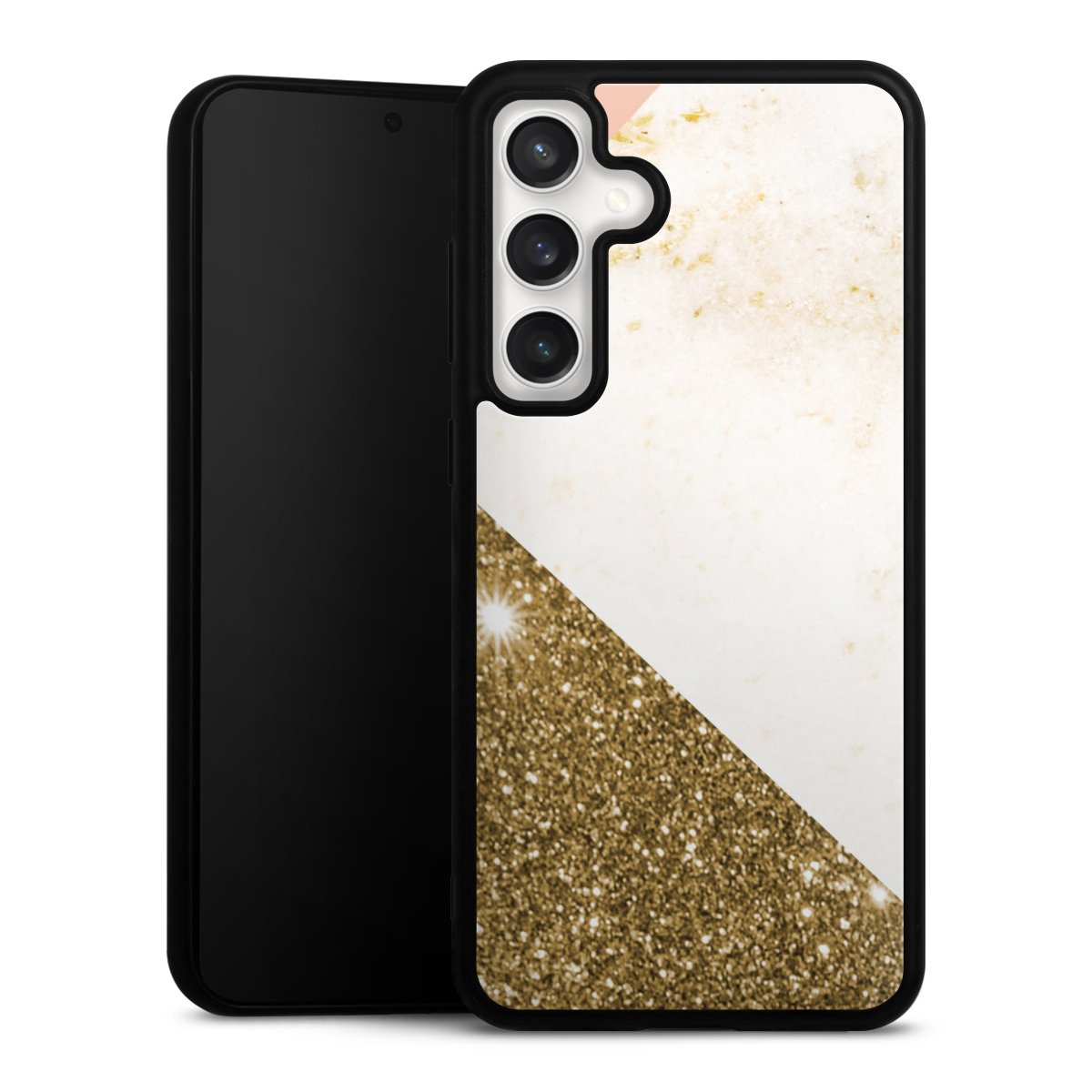 The contrast between the matte black TPU on the sides and the glossy glass surface not only makes the Gallery Case a fest for the eyes, but also a real treat for the hands: The glass gives the phone a pleasantly smooth back and the soft silicone edge provides the necessary grip.