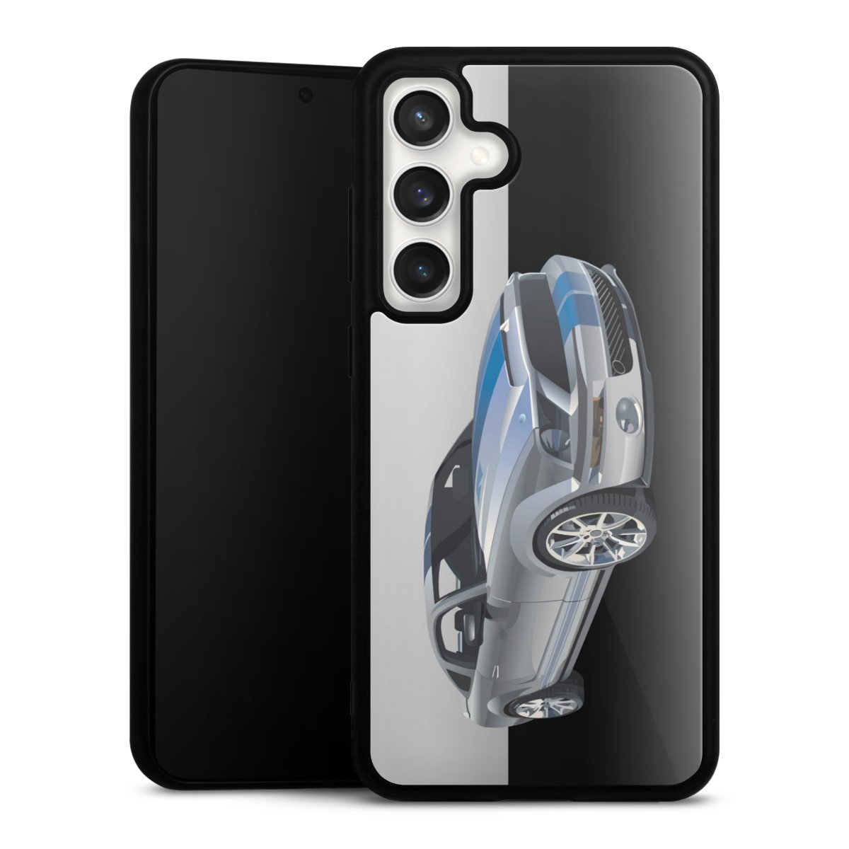 We print your design on the back of the glass inlay and then connect it firmly to the silicone case ,so that nothing sticks out and everything looks like it was cast from one piece. In addition, the sturdy glass element is protected from scratches by an additional coating and ensures a slight reflection on the shiny print image.