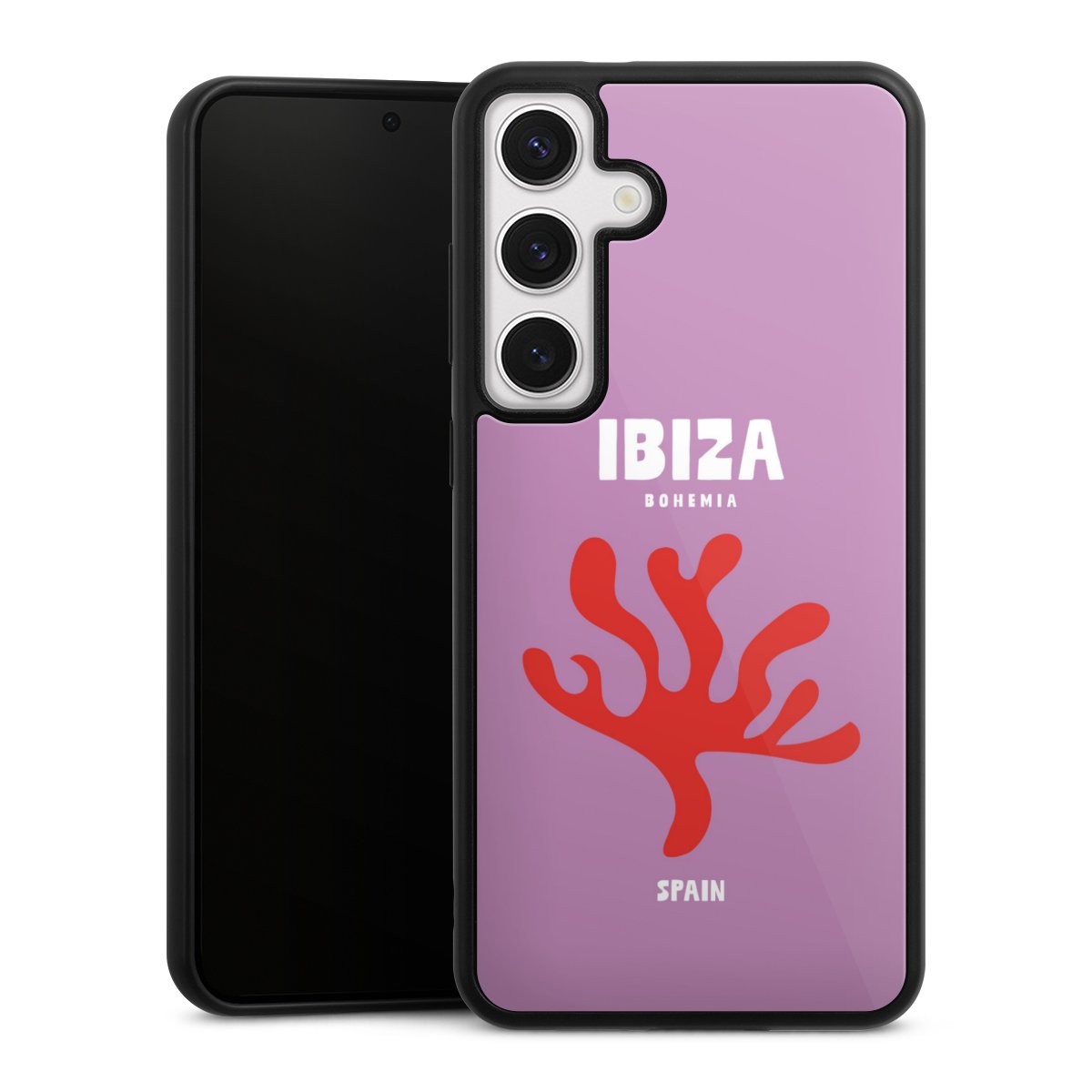 We print your design on the back of the glass inlay and then connect it firmly to the silicone case ,so that nothing sticks out and everything looks like it was cast from one piece. In addition, the sturdy glass element is protected from scratches by an additional coating and ensures a slight reflection on the shiny print image.