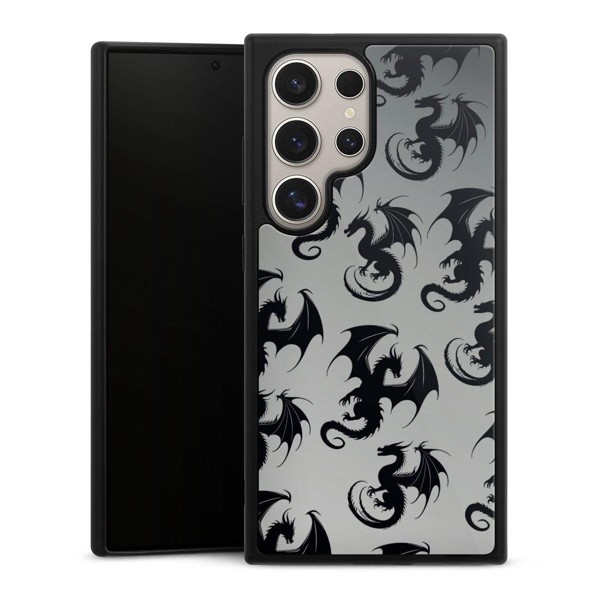 We print your design on the back of the glass inlay and then connect it firmly to the silicone case ,so that nothing sticks out and everything looks like it was cast from one piece. In addition, the sturdy glass element is protected from scratches by an additional coating and ensures a slight reflection on the shiny print image.