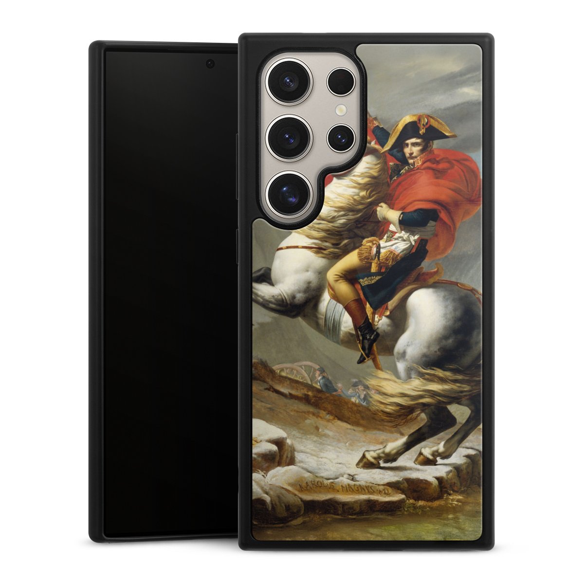 We print your design on the back of the glass inlay and then connect it firmly to the silicone case ,so that nothing sticks out and everything looks like it was cast from one piece. In addition, the sturdy glass element is protected from scratches by an additional coating and ensures a slight reflection on the shiny print image.
