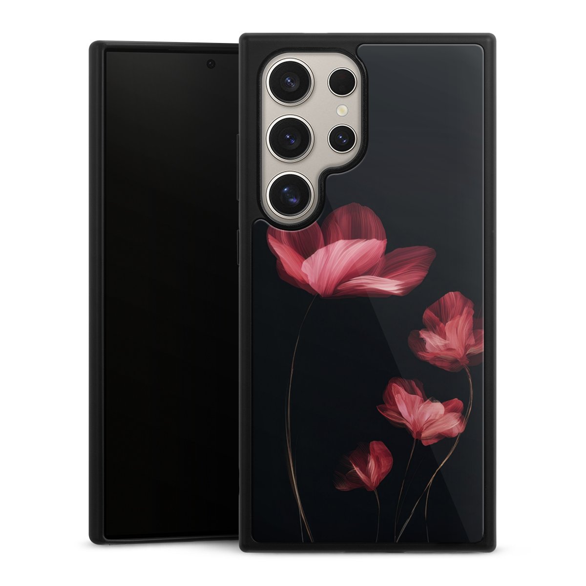 We print your design on the back of the glass inlay and then connect it firmly to the silicone case ,so that nothing sticks out and everything looks like it was cast from one piece. In addition, the sturdy glass element is protected from scratches by an additional coating and ensures a slight reflection on the shiny print image.