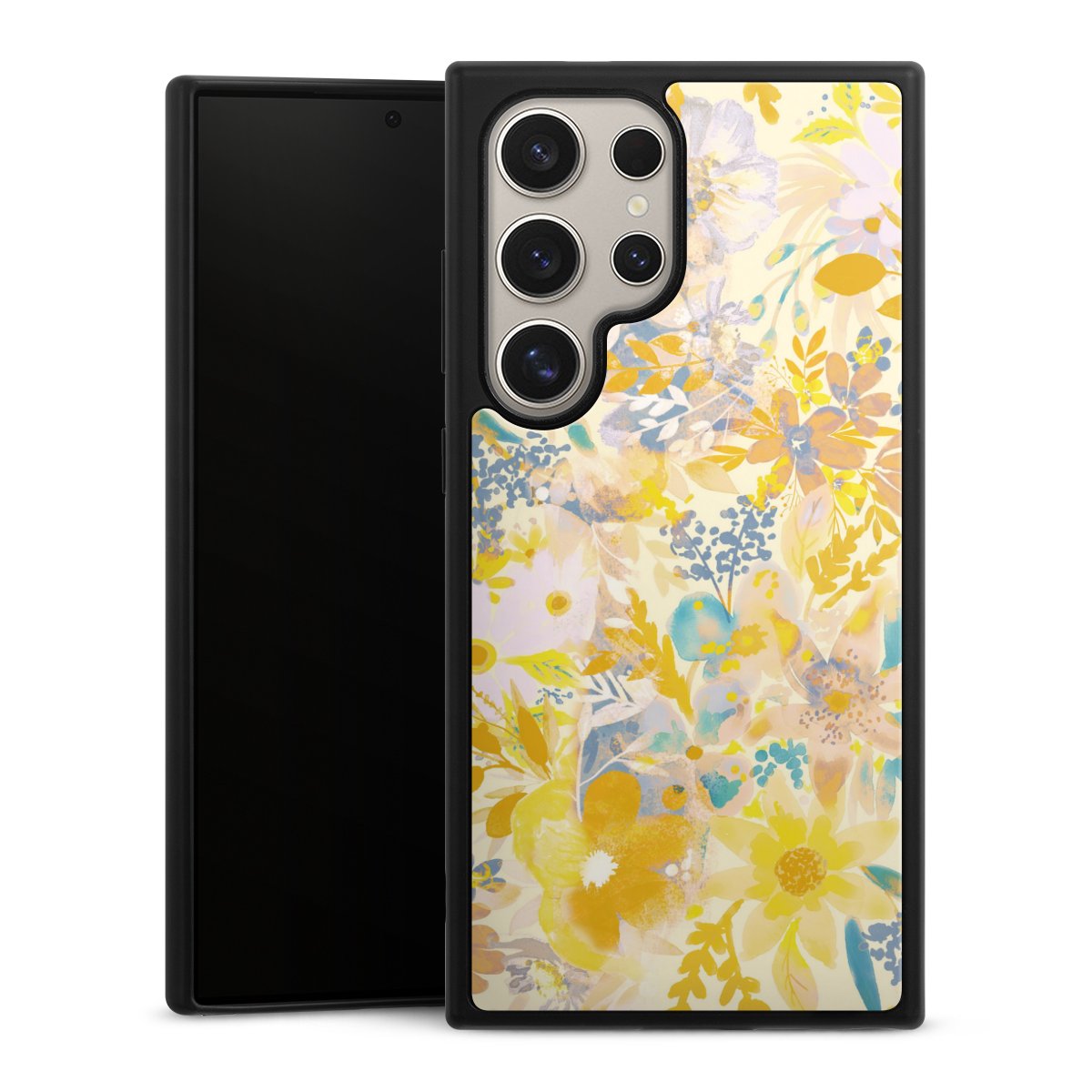 We print your design on the back of the glass inlay and then connect it firmly to the silicone case ,so that nothing sticks out and everything looks like it was cast from one piece. In addition, the sturdy glass element is protected from scratches by an additional coating and ensures a slight reflection on the shiny print image.