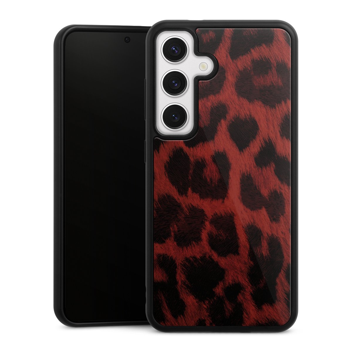 We print your design on the back of the glass inlay and then connect it firmly to the silicone case ,so that nothing sticks out and everything looks like it was cast from one piece. In addition, the sturdy glass element is protected from scratches by an additional coating and ensures a slight reflection on the shiny print image.