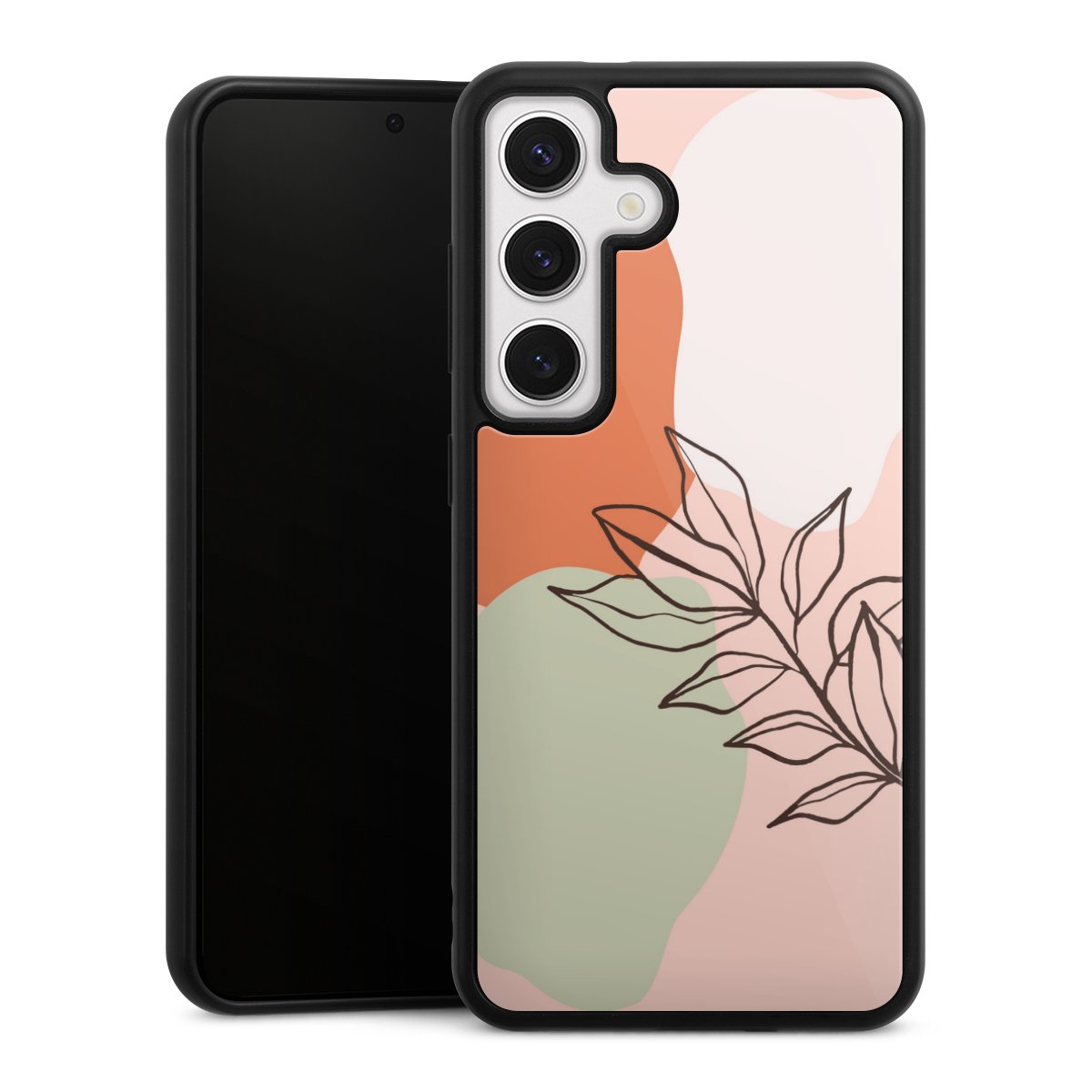 We print your design on the back of the glass inlay and then connect it firmly to the silicone case ,so that nothing sticks out and everything looks like it was cast from one piece. In addition, the sturdy glass element is protected from scratches by an additional coating and ensures a slight reflection on the shiny print image.