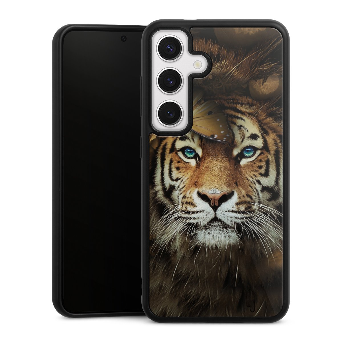 We print your design on the back of the glass inlay and then connect it firmly to the silicone case ,so that nothing sticks out and everything looks like it was cast from one piece. In addition, the sturdy glass element is protected from scratches by an additional coating and ensures a slight reflection on the shiny print image.
