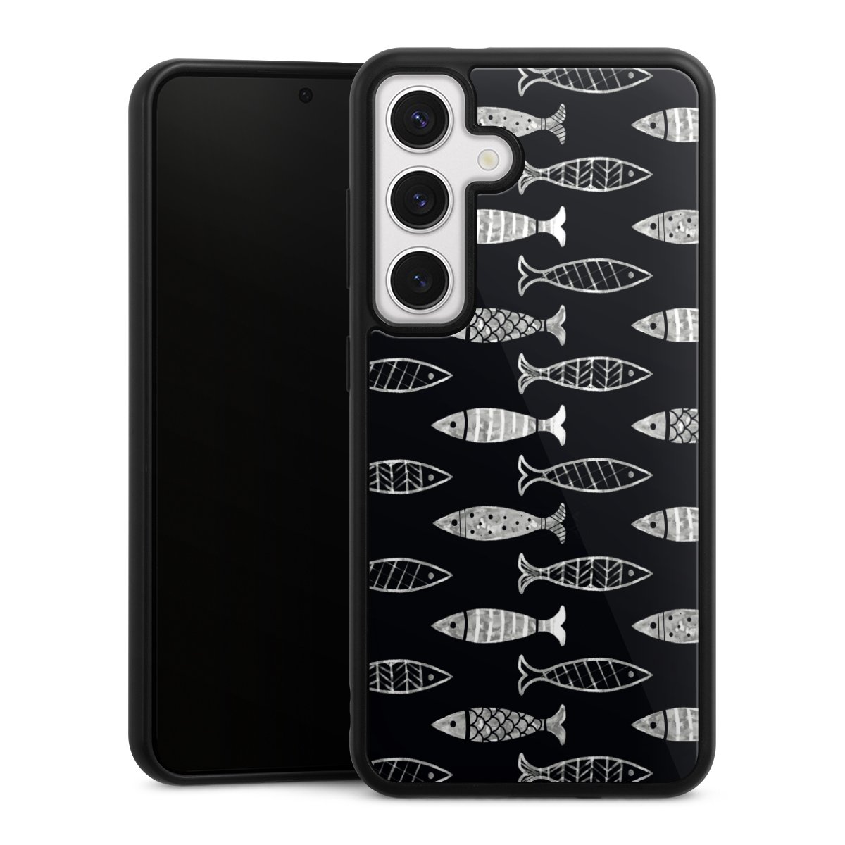 We print your design on the back of the glass inlay and then connect it firmly to the silicone case ,so that nothing sticks out and everything looks like it was cast from one piece. In addition, the sturdy glass element is protected from scratches by an additional coating and ensures a slight reflection on the shiny print image.