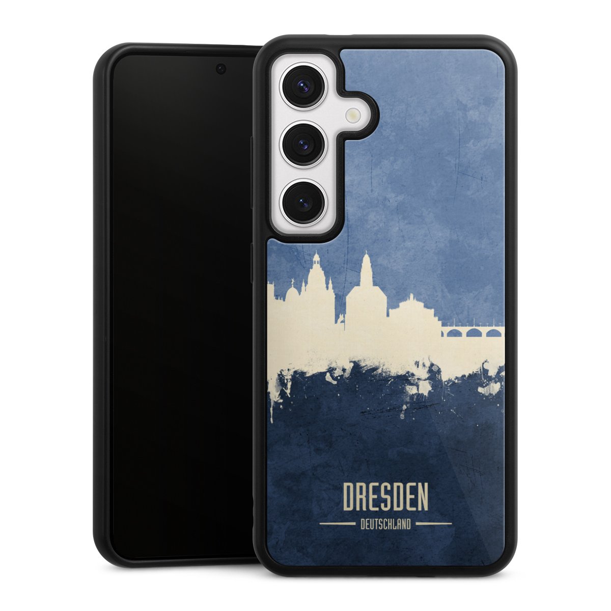 We print your design on the back of the glass inlay and then connect it firmly to the silicone case ,so that nothing sticks out and everything looks like it was cast from one piece. In addition, the sturdy glass element is protected from scratches by an additional coating and ensures a slight reflection on the shiny print image.