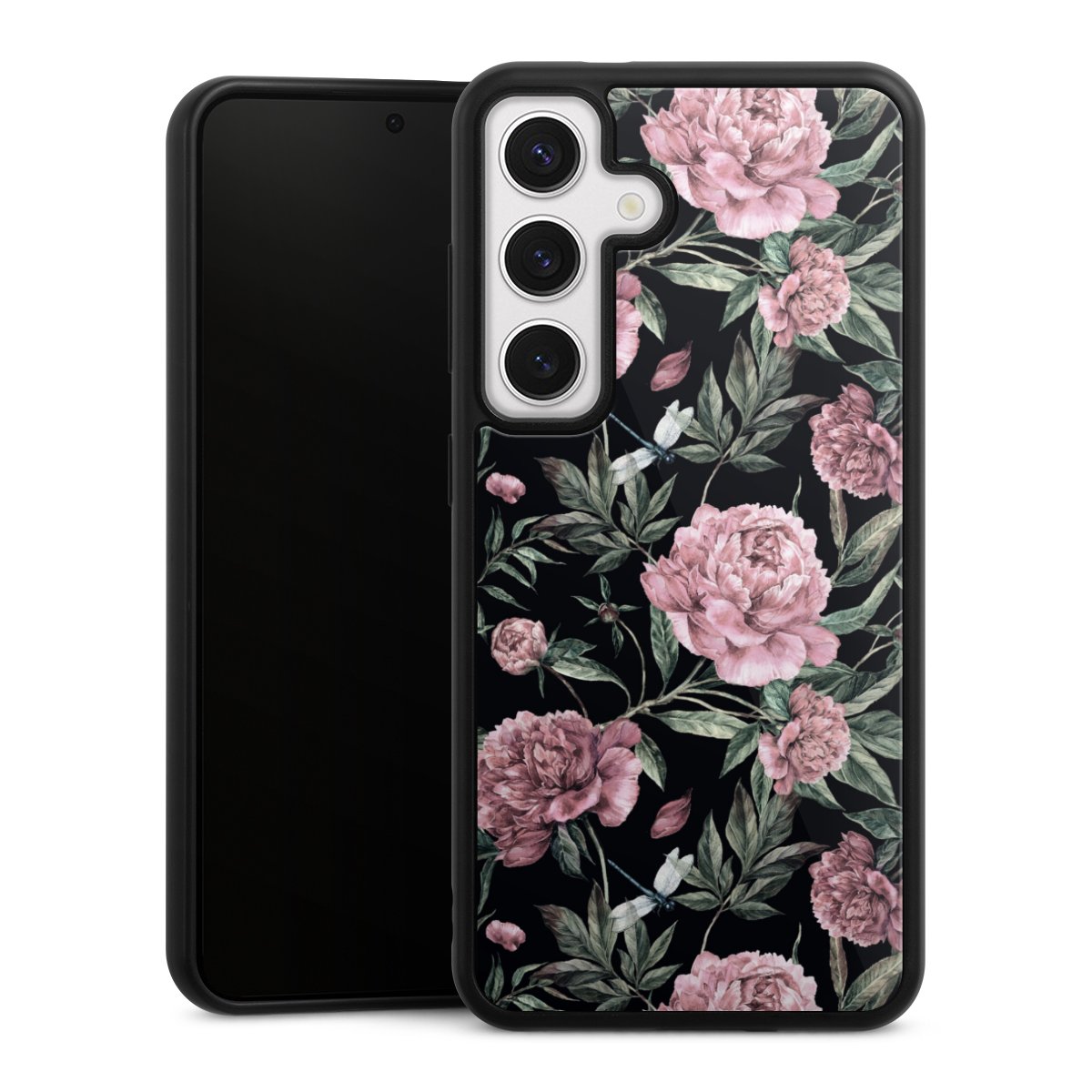 We print your design on the back of the glass inlay and then connect it firmly to the silicone case ,so that nothing sticks out and everything looks like it was cast from one piece. In addition, the sturdy glass element is protected from scratches by an additional coating and ensures a slight reflection on the shiny print image.