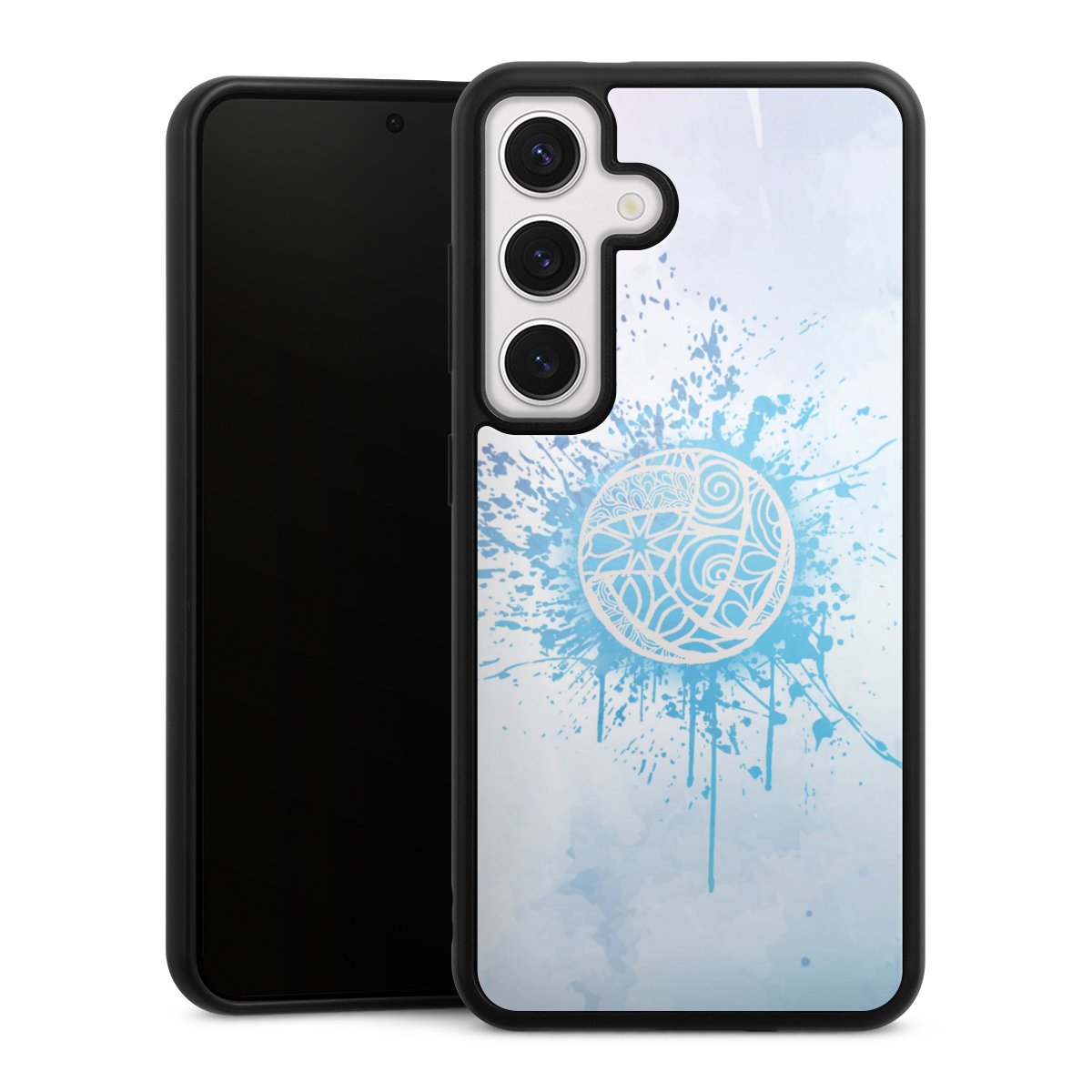 We print your design on the back of the glass inlay and then connect it firmly to the silicone case ,so that nothing sticks out and everything looks like it was cast from one piece. In addition, the sturdy glass element is protected from scratches by an additional coating and ensures a slight reflection on the shiny print image.