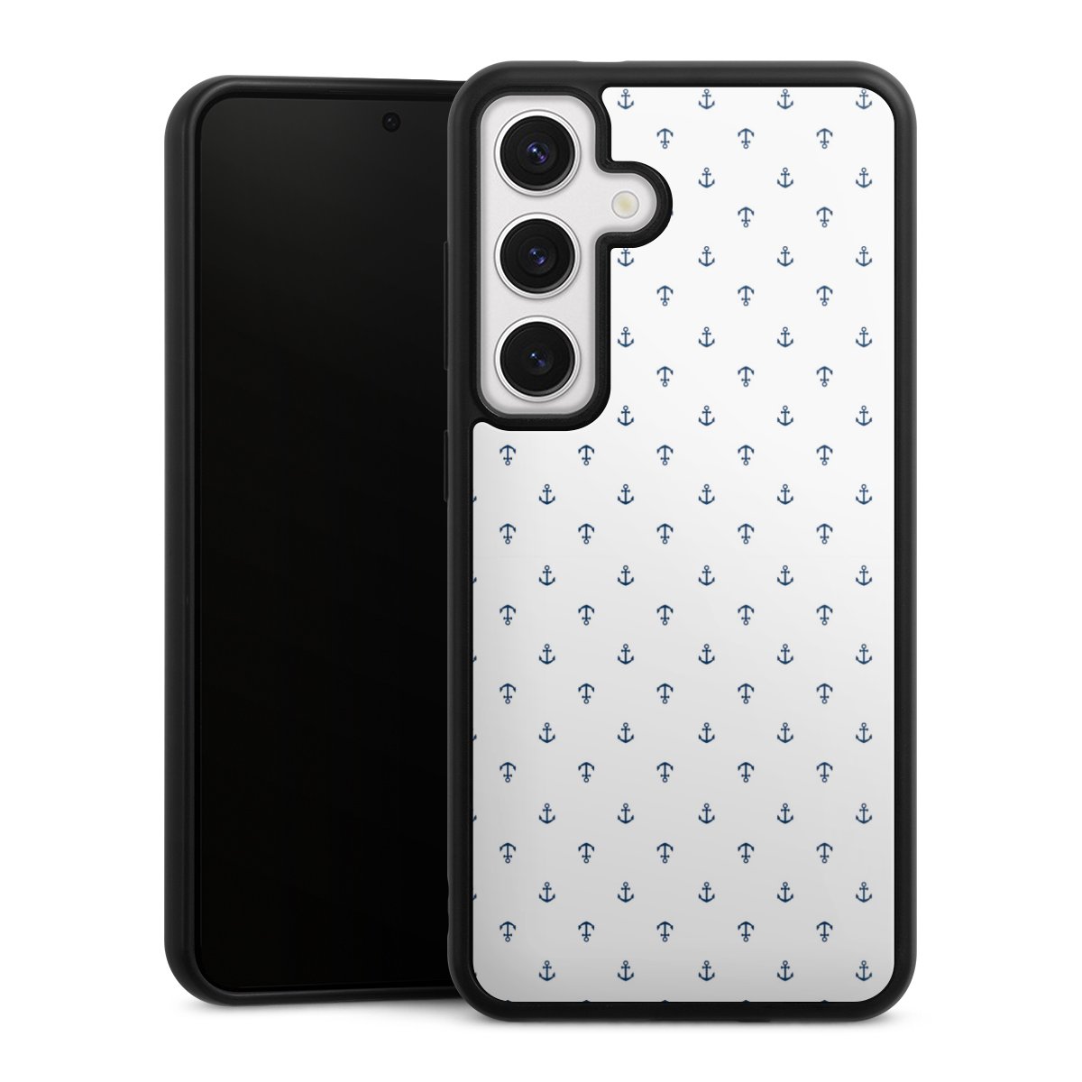 We print your design on the back of the glass inlay and then connect it firmly to the silicone case ,so that nothing sticks out and everything looks like it was cast from one piece. In addition, the sturdy glass element is protected from scratches by an additional coating and ensures a slight reflection on the shiny print image.