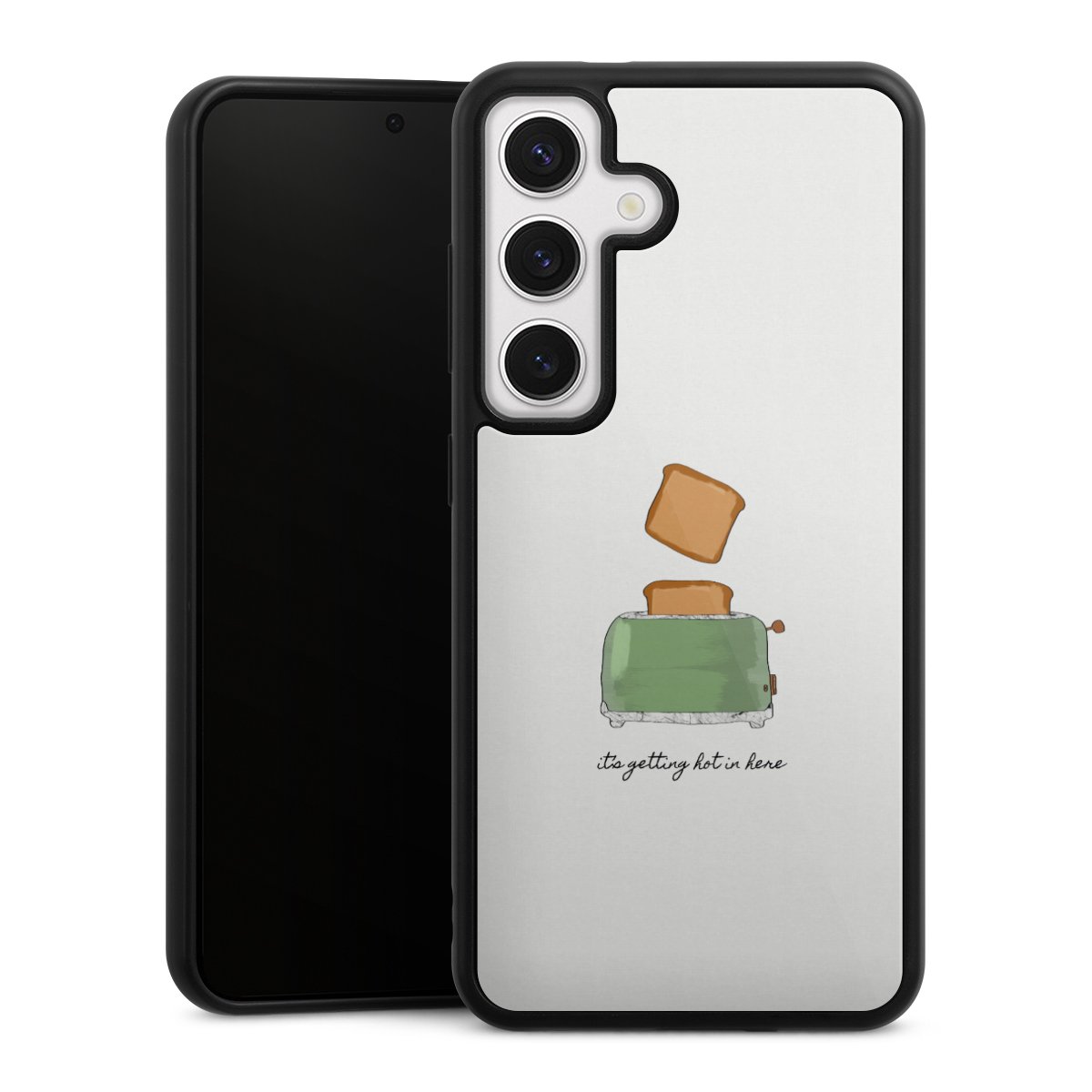 We print your design on the back of the glass inlay and then connect it firmly to the silicone case ,so that nothing sticks out and everything looks like it was cast from one piece. In addition, the sturdy glass element is protected from scratches by an additional coating and ensures a slight reflection on the shiny print image.