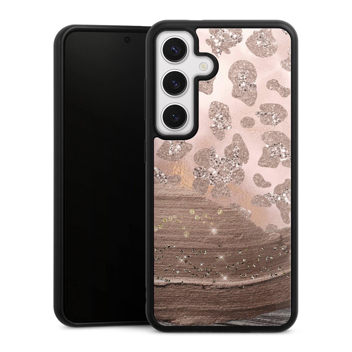 We print your design on the back of the glass inlay and then connect it firmly to the silicone case ,so that nothing sticks out and everything looks like it was cast from one piece. In addition, the sturdy glass element is protected from scratches by an additional coating and ensures a slight reflection on the shiny print image.