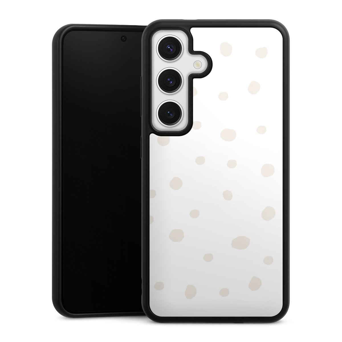 We print your design on the back of the glass inlay and then connect it firmly to the silicone case ,so that nothing sticks out and everything looks like it was cast from one piece. In addition, the sturdy glass element is protected from scratches by an additional coating and ensures a slight reflection on the shiny print image.