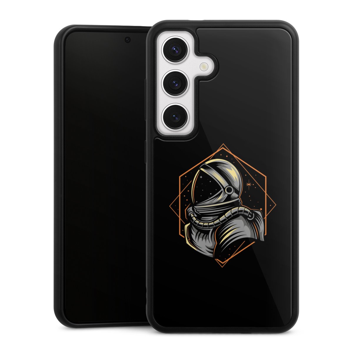 We print your design on the back of the glass inlay and then connect it firmly to the silicone case ,so that nothing sticks out and everything looks like it was cast from one piece. In addition, the sturdy glass element is protected from scratches by an additional coating and ensures a slight reflection on the shiny print image.