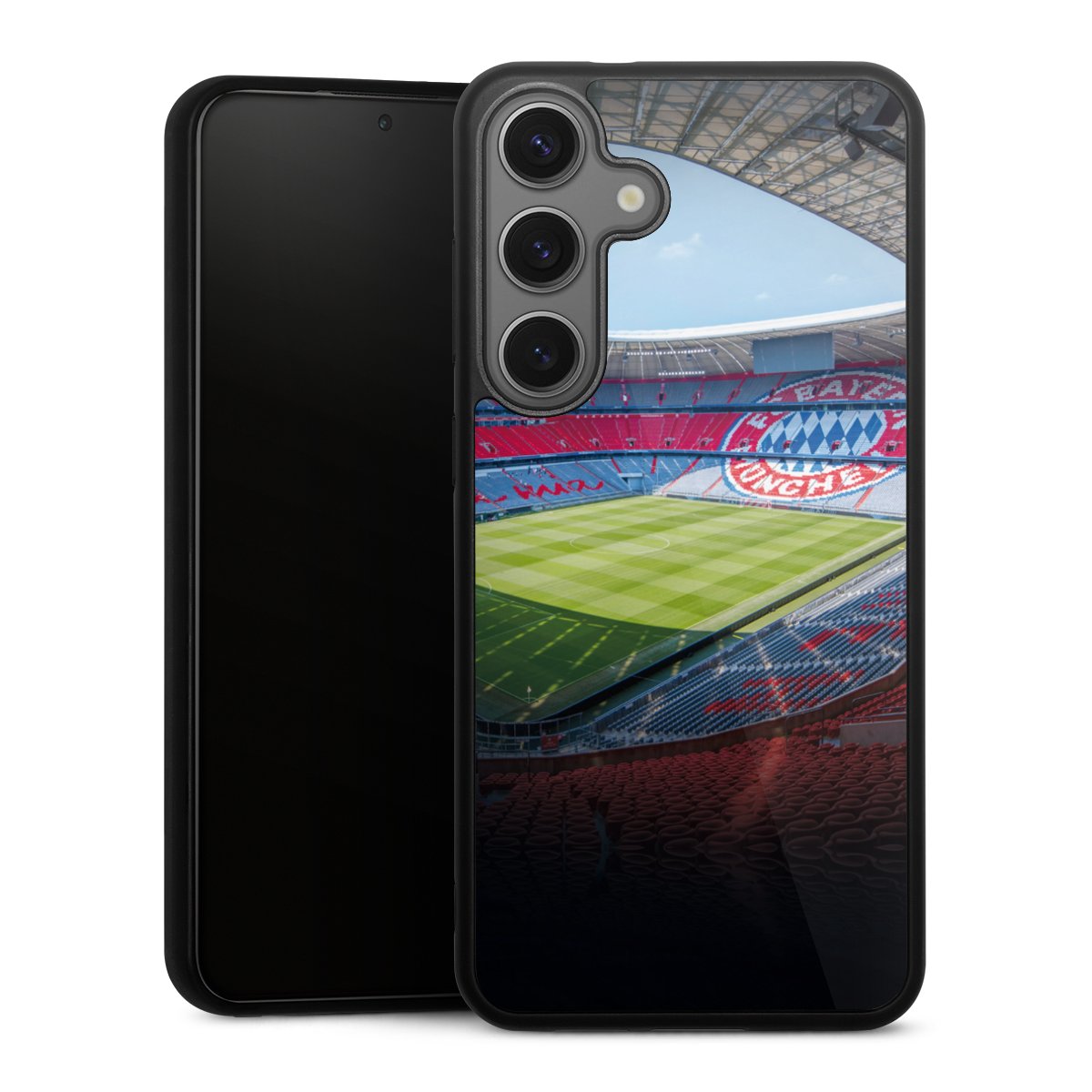 We print your design on the back of the glass inlay and then connect it firmly to the silicone case ,so that nothing sticks out and everything looks like it was cast from one piece. In addition, the sturdy glass element is protected from scratches by an additional coating and ensures a slight reflection on the shiny print image.