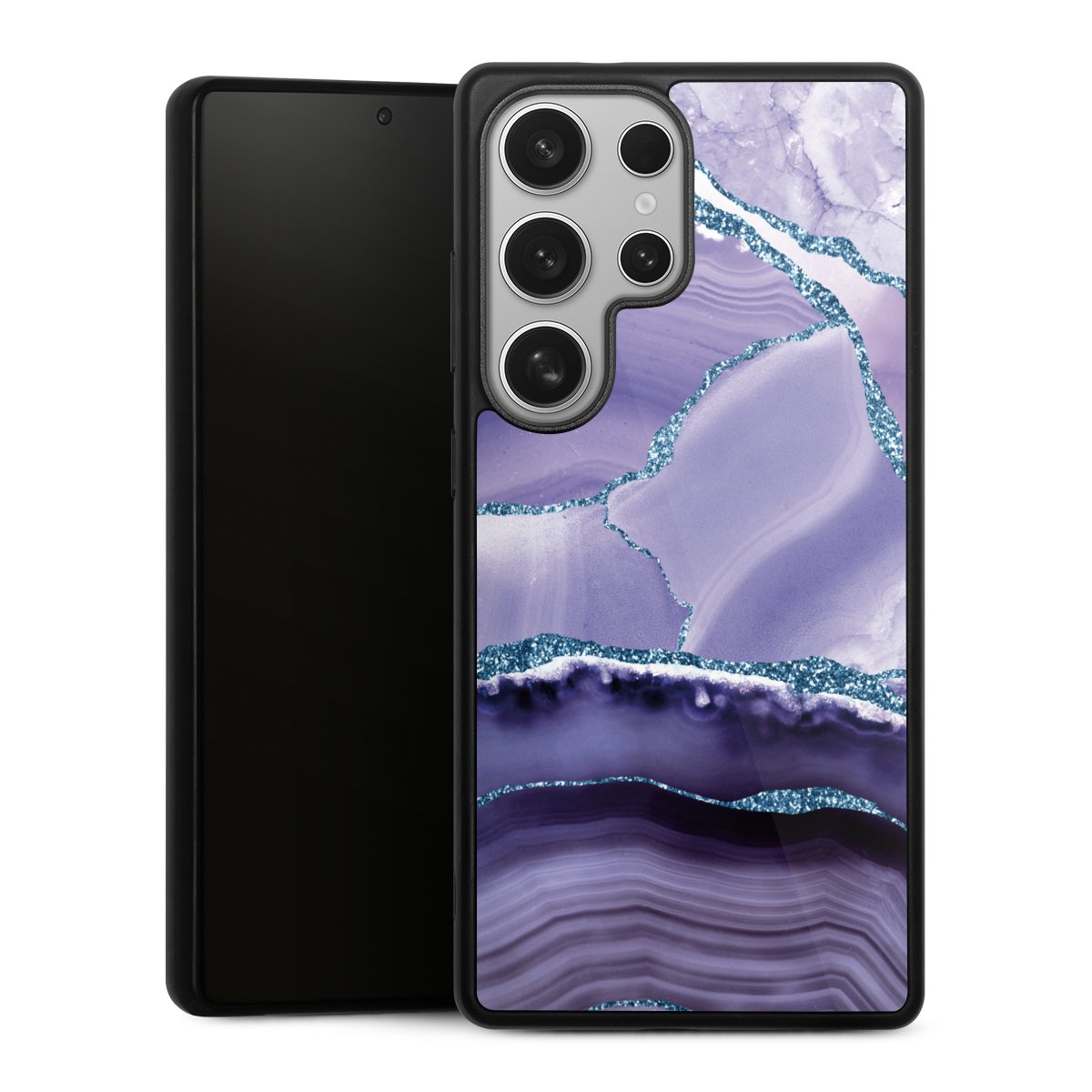 We print your design on the back of the glass inlay and then connect it firmly to the silicone case ,so that nothing sticks out and everything looks like it was cast from one piece. In addition, the sturdy glass element is protected from scratches by an additional coating and ensures a slight reflection on the shiny print image.
