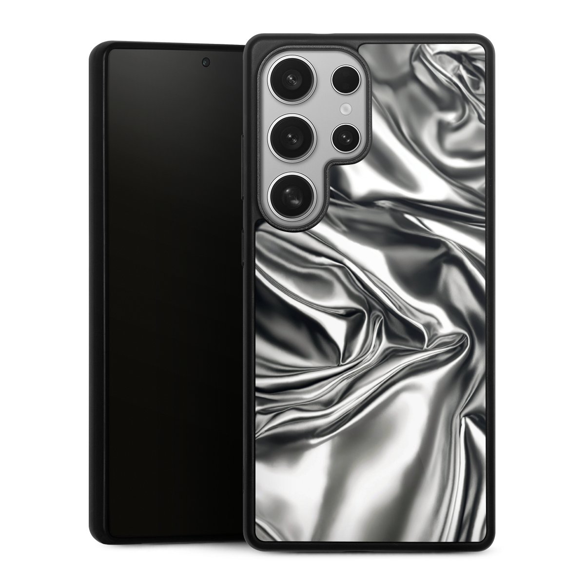 We print your design on the back of the glass inlay and then connect it firmly to the silicone case ,so that nothing sticks out and everything looks like it was cast from one piece. In addition, the sturdy glass element is protected from scratches by an additional coating and ensures a slight reflection on the shiny print image.