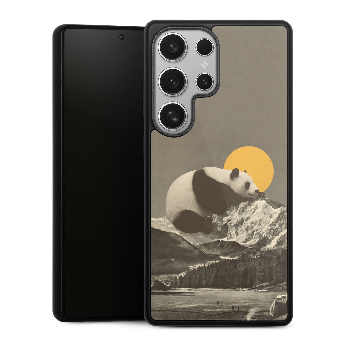 We print your design on the back of the glass inlay and then connect it firmly to the silicone case ,so that nothing sticks out and everything looks like it was cast from one piece. In addition, the sturdy glass element is protected from scratches by an additional coating and ensures a slight reflection on the shiny print image.