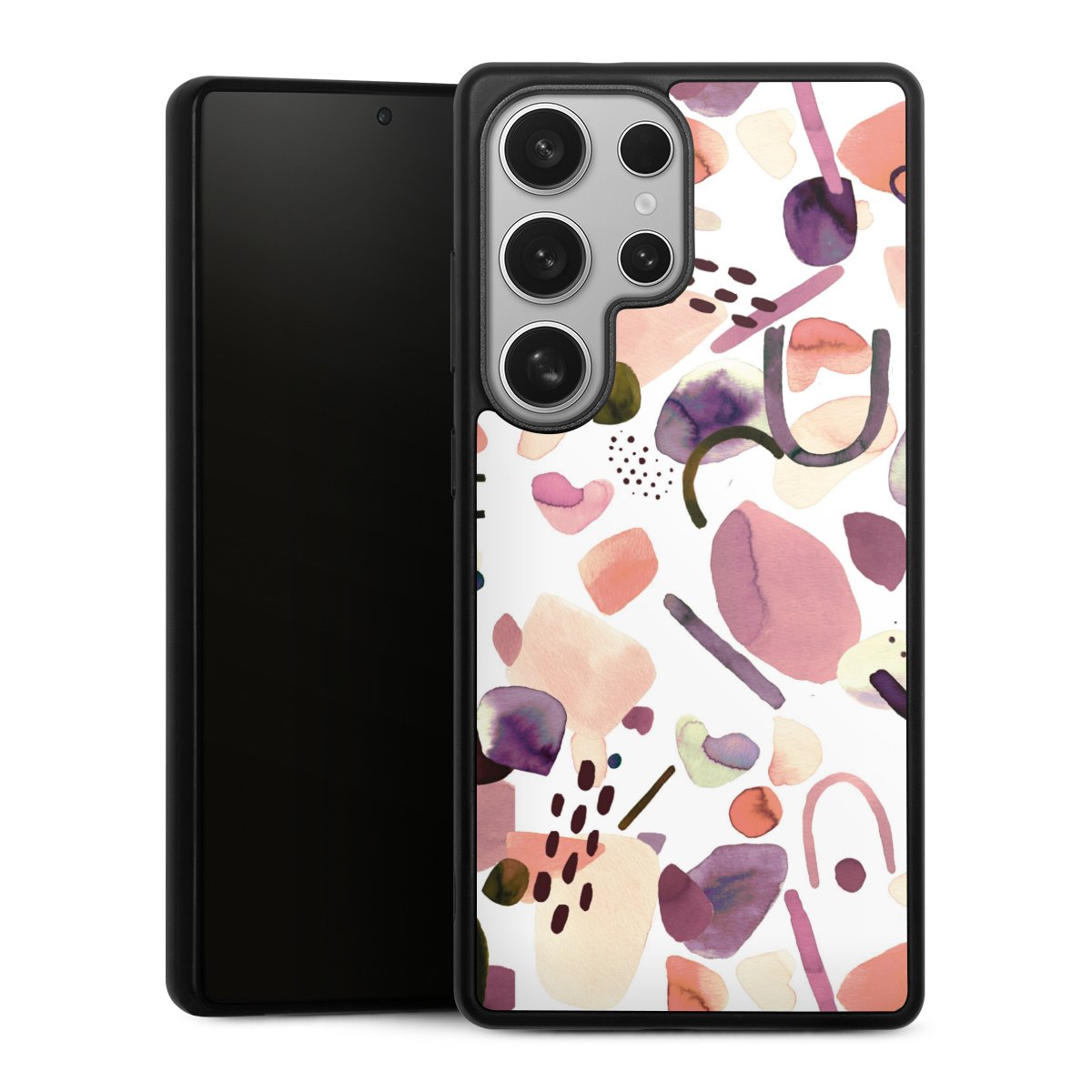 We print your design on the back of the glass inlay and then connect it firmly to the silicone case ,so that nothing sticks out and everything looks like it was cast from one piece. In addition, the sturdy glass element is protected from scratches by an additional coating and ensures a slight reflection on the shiny print image.